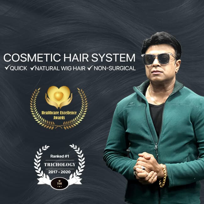 Cosmetic Hair Replacement in Hyderabad or the Cosmetic Hair System, is for those who want a quick fix for their hair loss without having to go through surgery. This gives immediate volume and coverage. And here is the best part. CHS is customised to match your hair type, colour and style. This ensures that it blends smoothly with your existing hair and gives you a natural look.